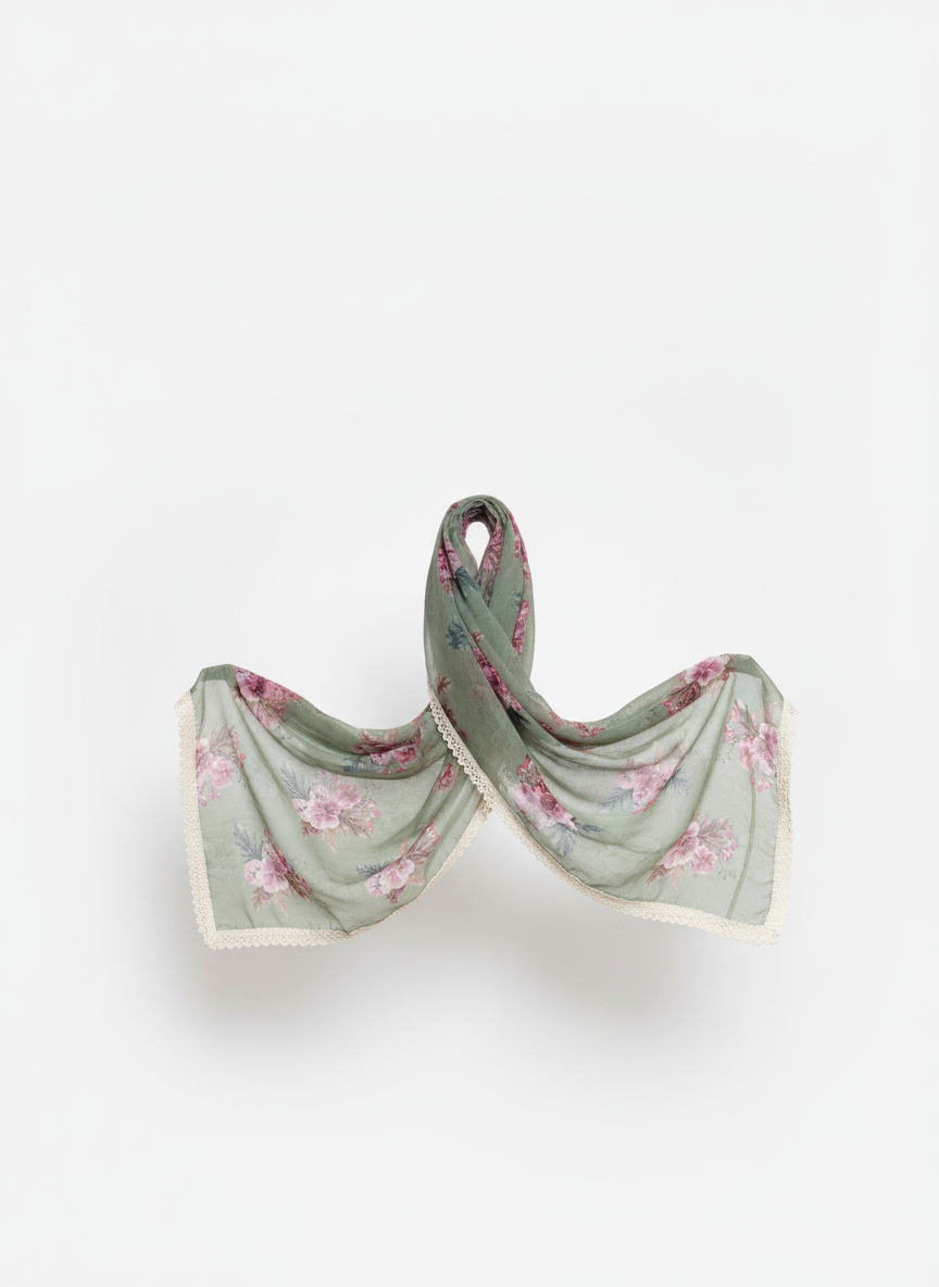 racefully delicate, the Olive Bloom is crafted from lightweight chiffon with a soft green base and blooming mauve floral prints. The V-neck kurta features intricate lace detailing and a flowy silhouette paired with comfortable straight trousers. The matching printed dupatta completes this romantic, breezy ensemble deal for daytime celebrations, Eid gatherings, or garden parties.