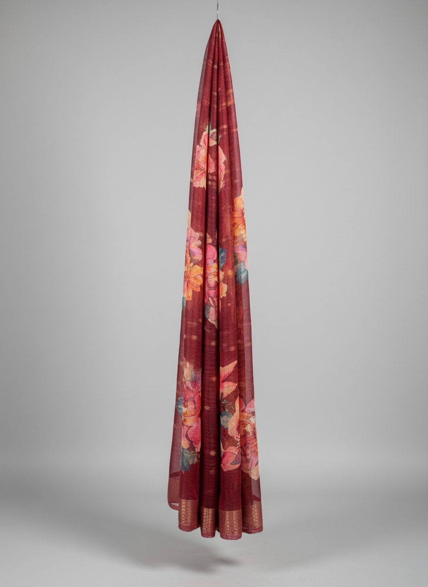 Three piece Red wine kurta set, Ideal for casual wear. light weight and elegant stitched embroidery design on neck, cuff and hem with floral design print on dupatta.